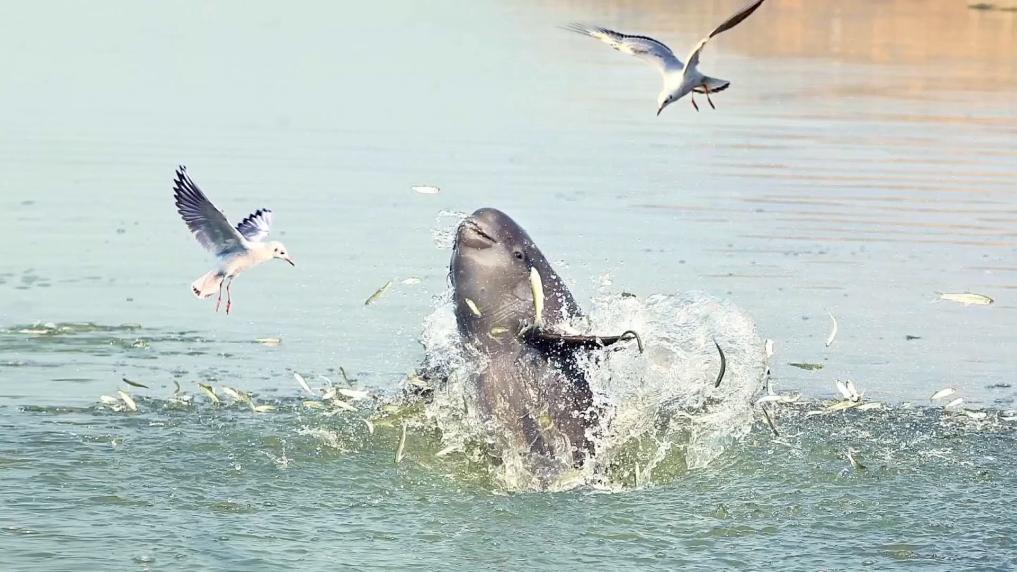 长江江豚是目前长江中唯一的淡水鲸豚类动物,数量比大熊猫还要稀少。它圆滚滚的脑袋上,嘴部弧线自然上扬呈微笑状,因此被誉为“微笑天使”。因生态环境变化和人为因素干扰,江豚数量一度不断下降。