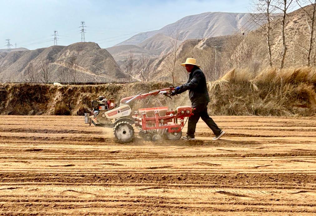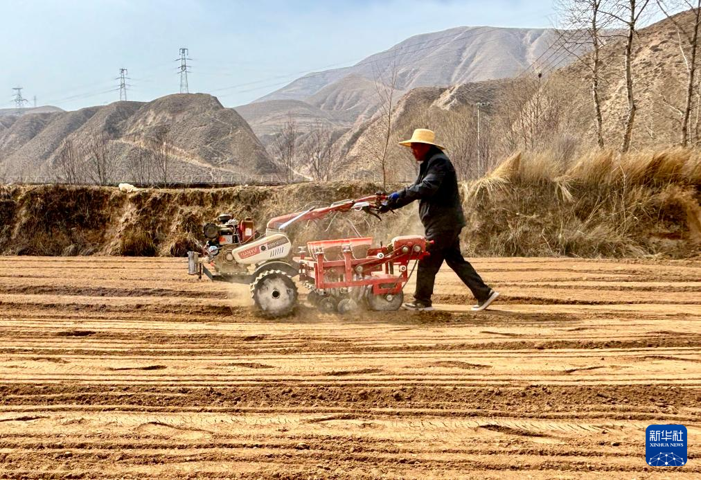3月下旬,地处青藏高原东部的河湟谷地春寒料峭。青海省海东市乐都区洪水镇上窑洞村村民范向文驾驶小型精量播种机,在山坡上的田里来回穿梭。