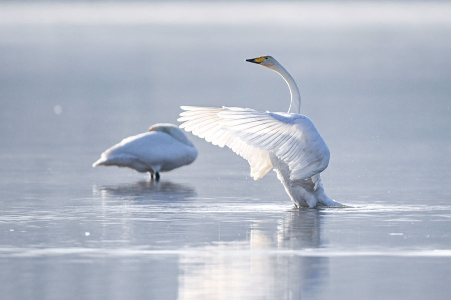 这是在青海省海东市化隆回族自治县境内的黄河边拍摄的天鹅。新华社记者 齐芷玥 摄
