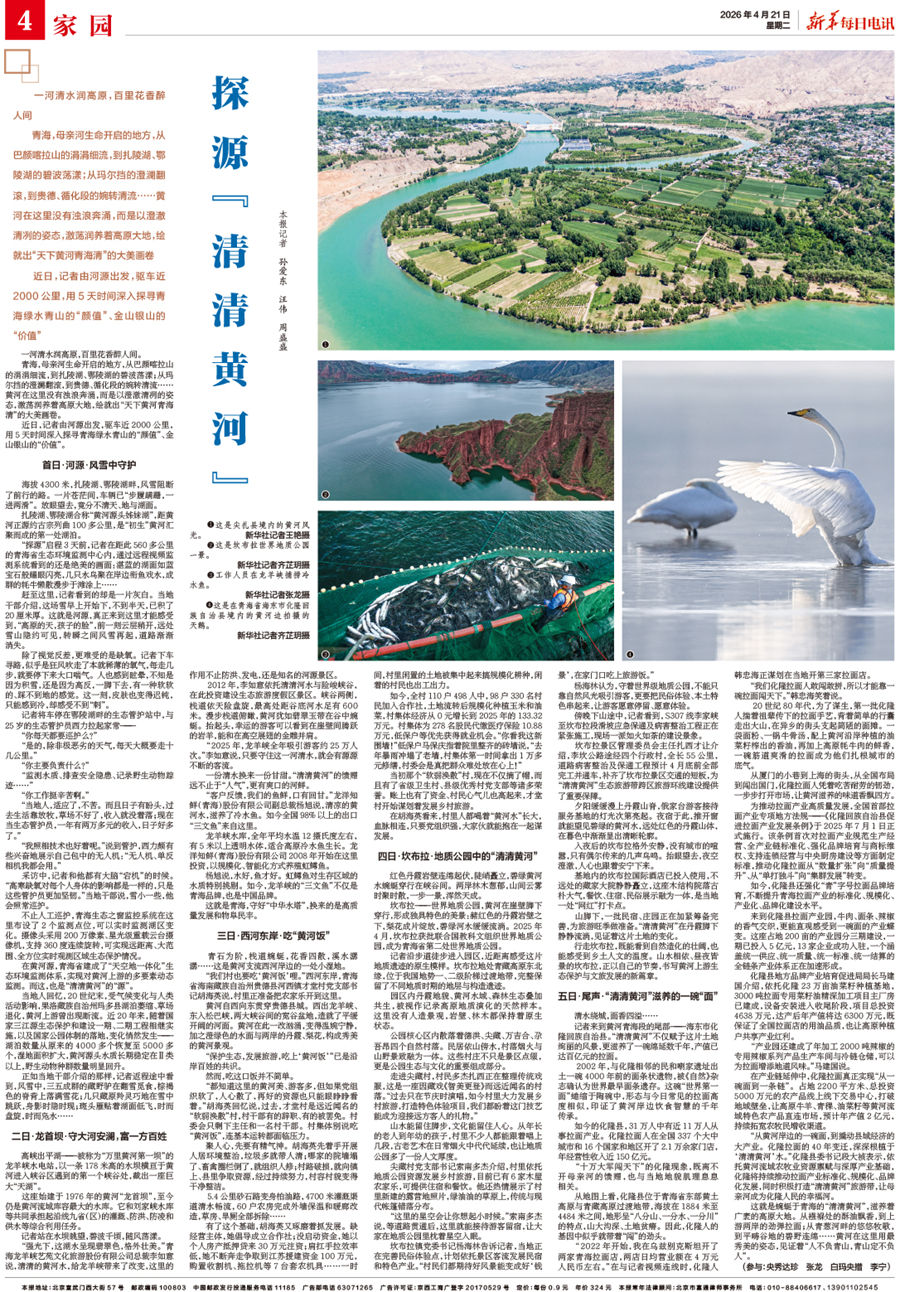 这就是蜿蜒于青海的“清清黄河”,滋养着广袤的高原大地。从襁褓处的酥油飘香,到上游两岸的劲弹拉面;从青葱河畔的悠悠牧歌,到平畴谷地的碧野连绵……黄河在这里用最秀美的姿态,见证着“人不负青山,青山定不负人”。(参与:央秀达珍 张龙 白玛央措 李宁)
